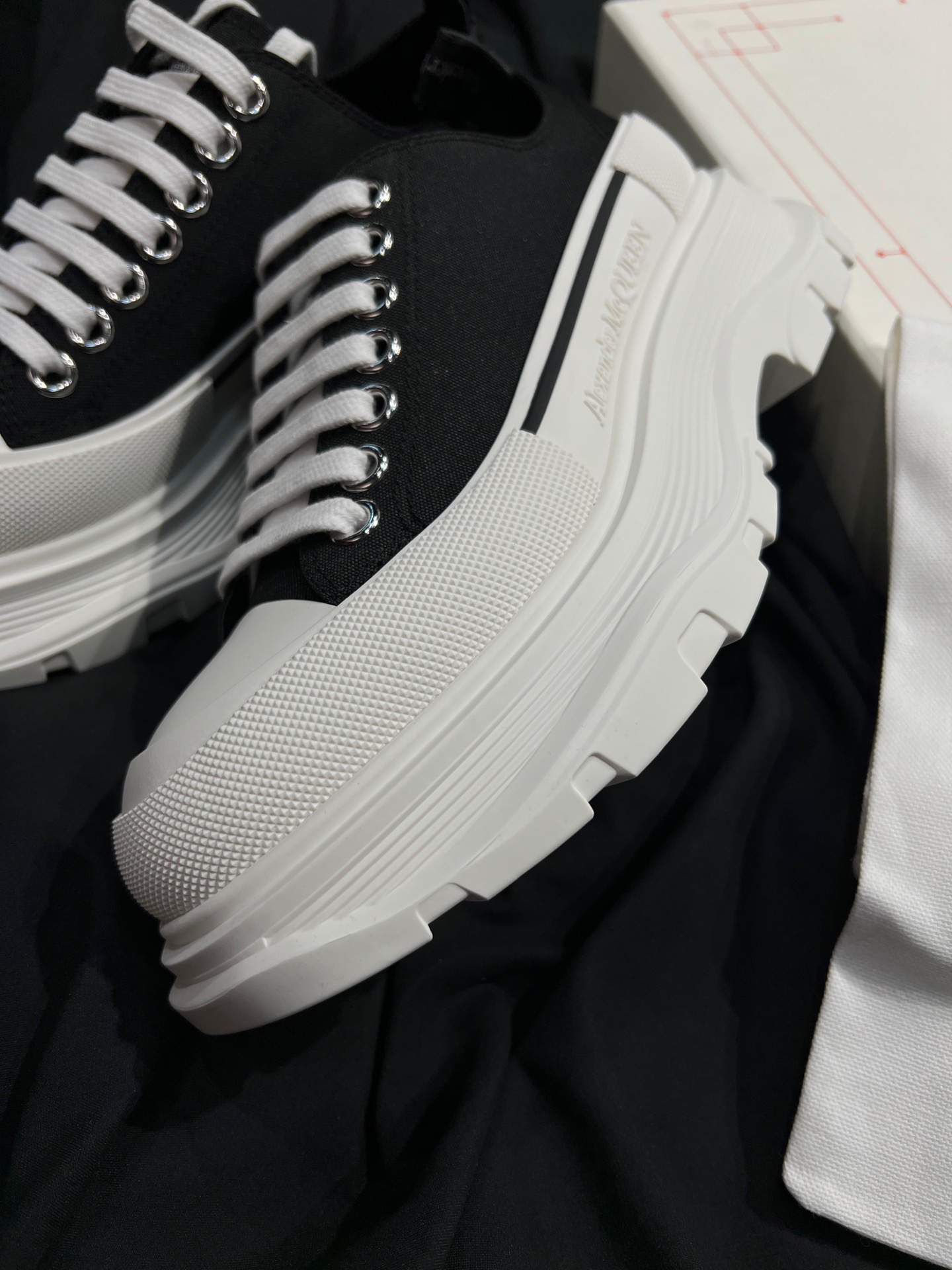Alexander McQueen Tread Slick White Black Sneakers was added to your shopping cart.